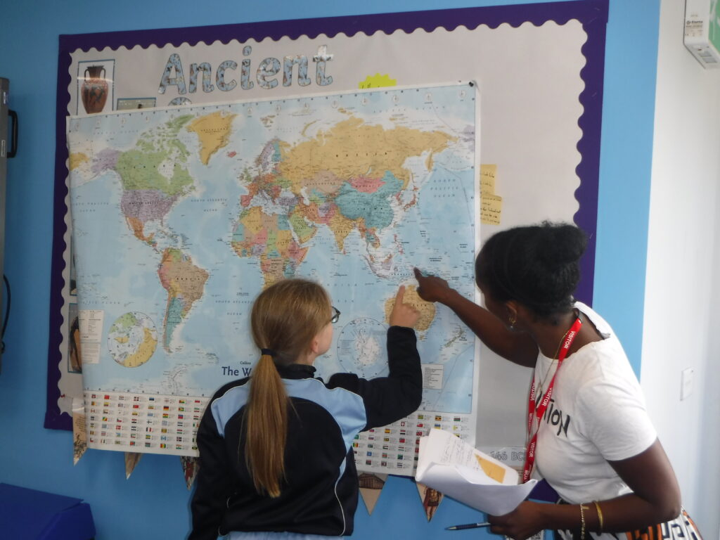 questions and locate Mrs Marday’s journey on a world map. The children enjoyed identifying different countries around the world and showing Mrs Marday where their parents may