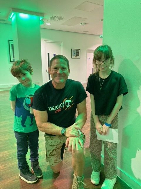 Steve Backshall is one of the figureheads of the charity and he was at the 02 doing Deadly 60 live last week. The World Land Trust had selected Aubrey and Huxley as 2 of 6 children that they wanted to invite to watch the show with them in a VIP box at the O2, to thank them for their fundraising efforts.